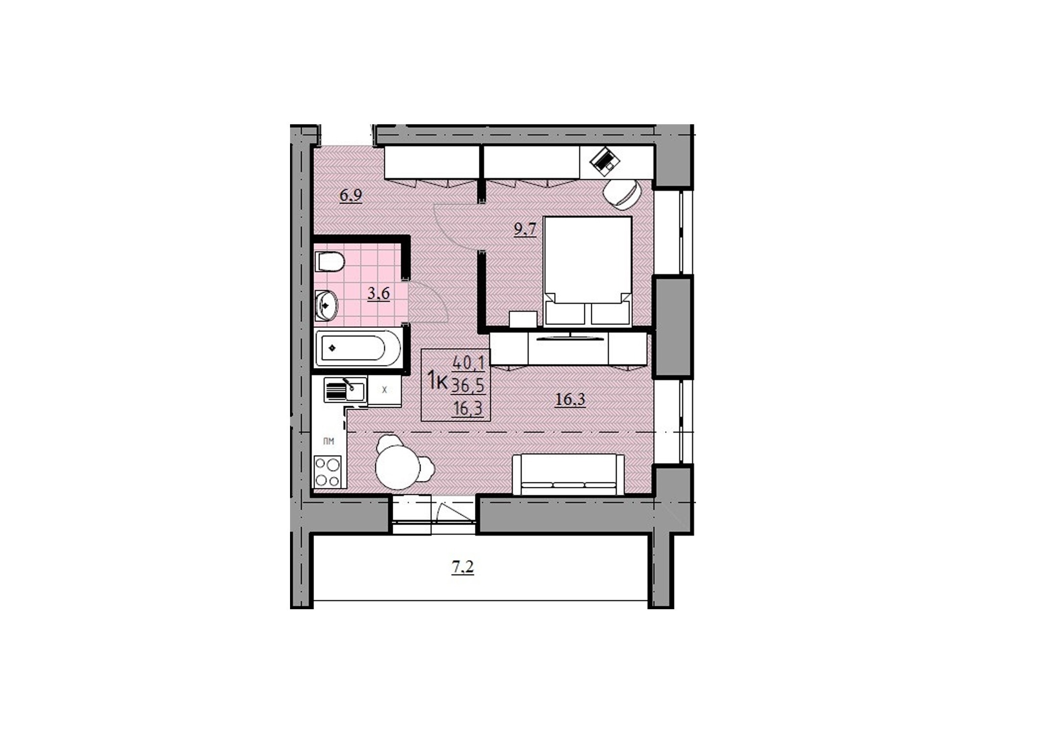 Застройщик реализует 1- комнатную квартиру, которая включает в себя: кухню, спальню, прихожую, санузел совмещенный, лоджию. Квартира выполнена в чистовой отделке. Чистовая отделка включает в себя: