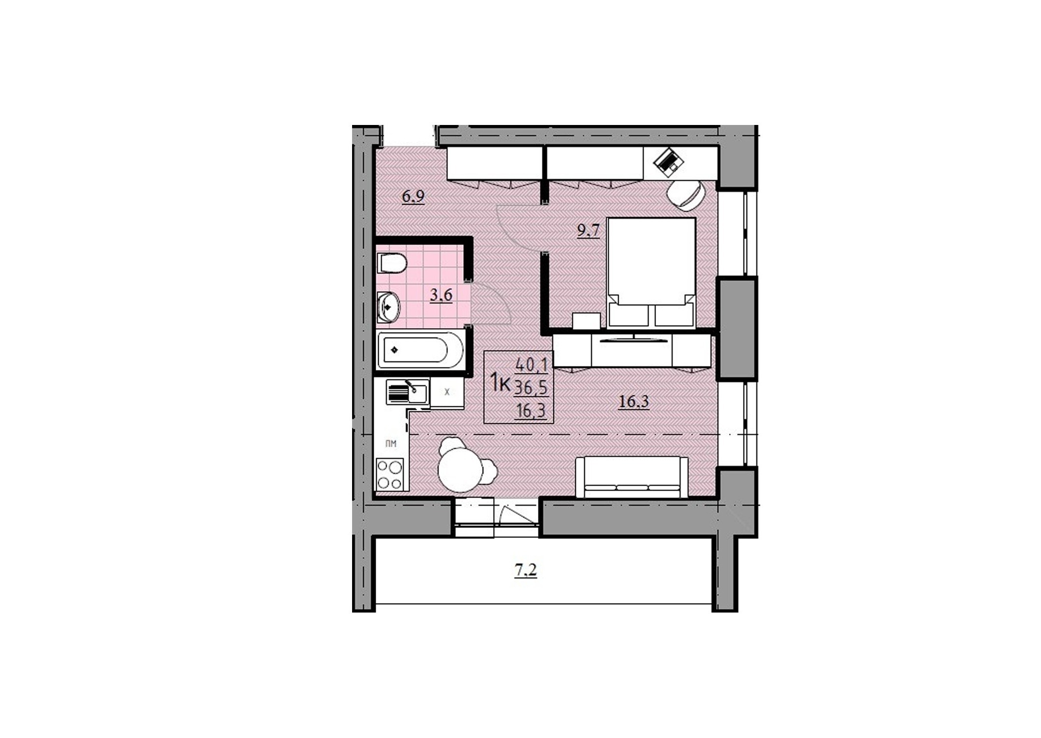 1-комнатная квартира, 36,5 м² / Чистовая отделка